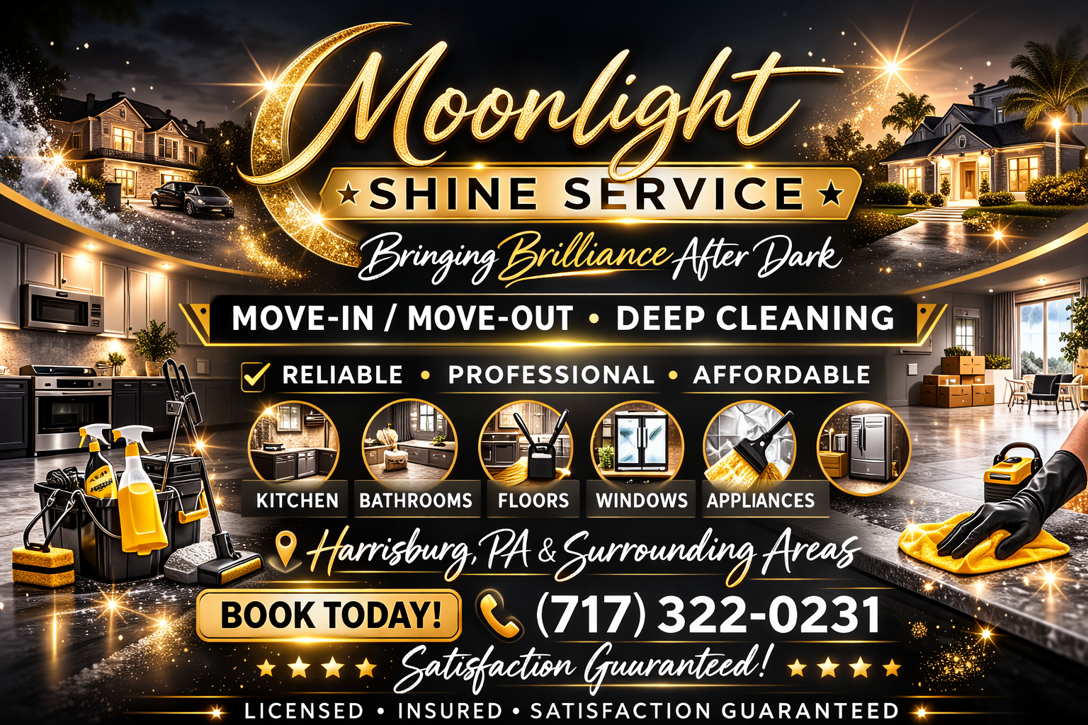 Moving is stressful, but cleaning doesn't have to be. Moonlight Shine Service provides detail-oriented cleaning services designed to leave your space spotless, refreshed and ready for its next chapter.
